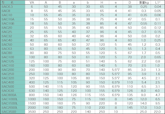 ●SAC型とSCC型電源トランスは、下記の特徴を持っております。