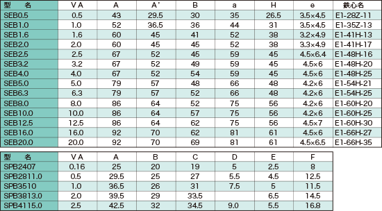 ●SEBタイプ(バンド式)、SPBタイプ(プリントバン用)はもっとも簡便で小容量、ローコストの量産向きトランスです。