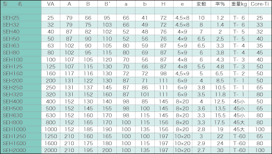 ●主に産業機器、機械用大容量のご希望に適したトランスです。